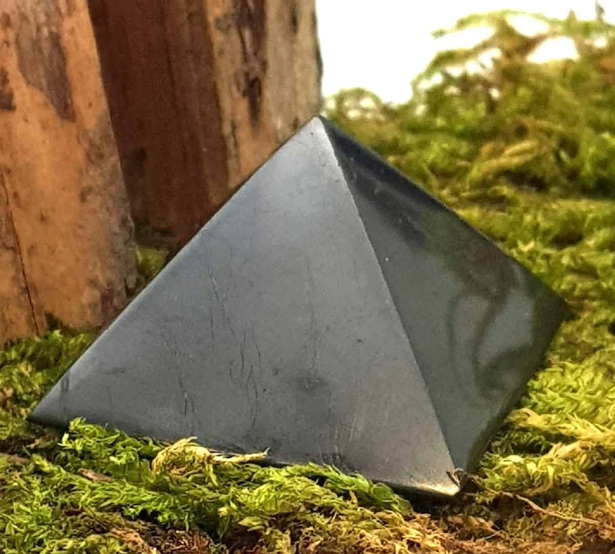 la piramide di Shungite nota per le sue proprietà protettive contro le onde elettromagnetiche, è purificatrice dell’ambiente e aiuta a contrastare l’insonnia, l’emicrania e lo stress se posizionata vicino al letto.